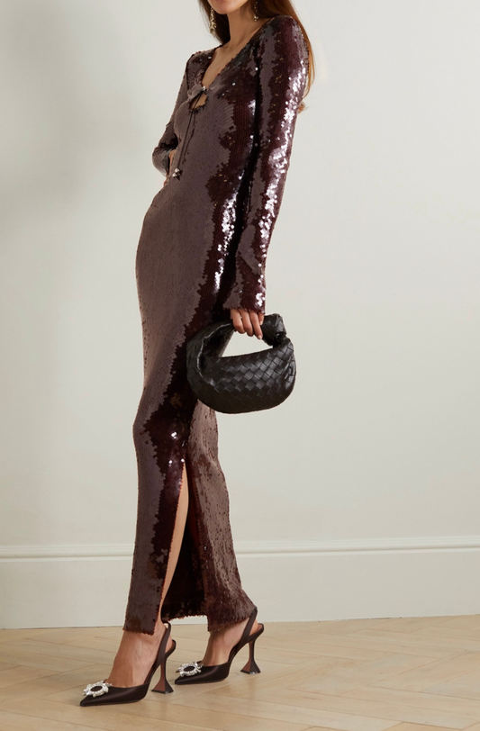 16Arlington Solaria Sequin Midi Dress - Chocolate Brown