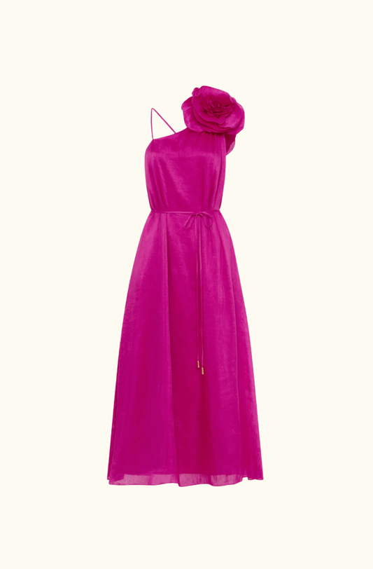 Rodarte Floral-Appliqué Printed Silk Slip Dress