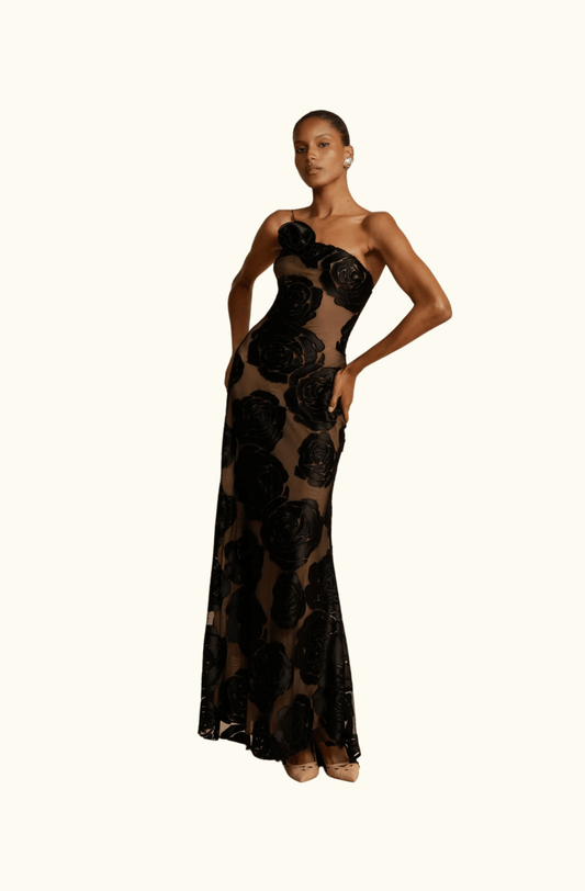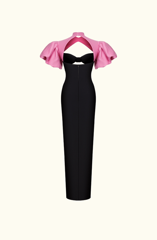 Rasario Black Crystal-embellished Two-tone Crepe Gown
