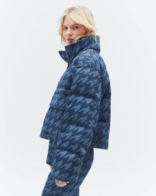 Perfect Moment Houndstooth Quilted Ski Jacket - Blue & Red