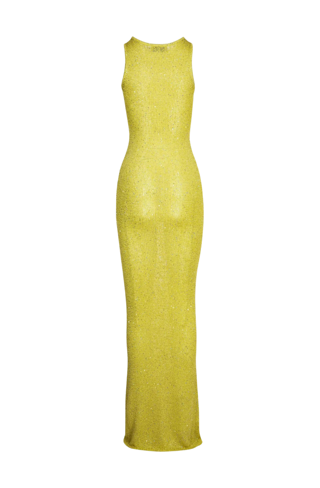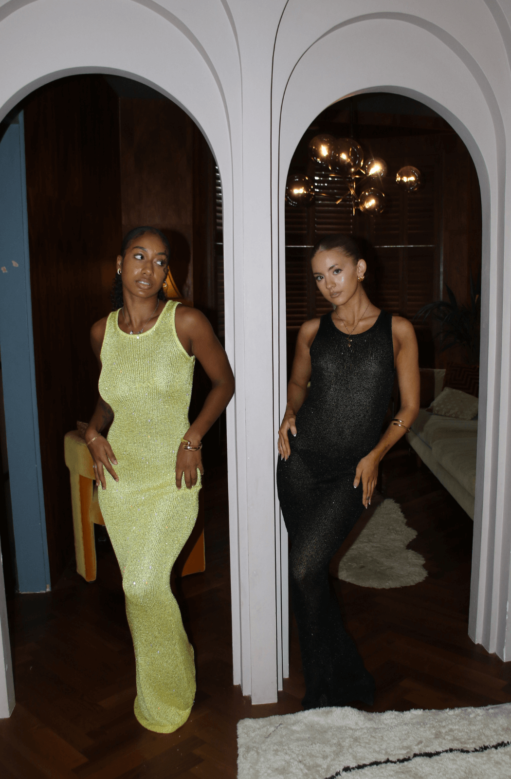 The Natalia Dress in Chartreuse Sequin By Asta Resort is an opulent floor length dress designed to be the centre of attention which flaunts your figure. Made from a lustrous cotton-based knit woven in with micro sequins from head to toe.