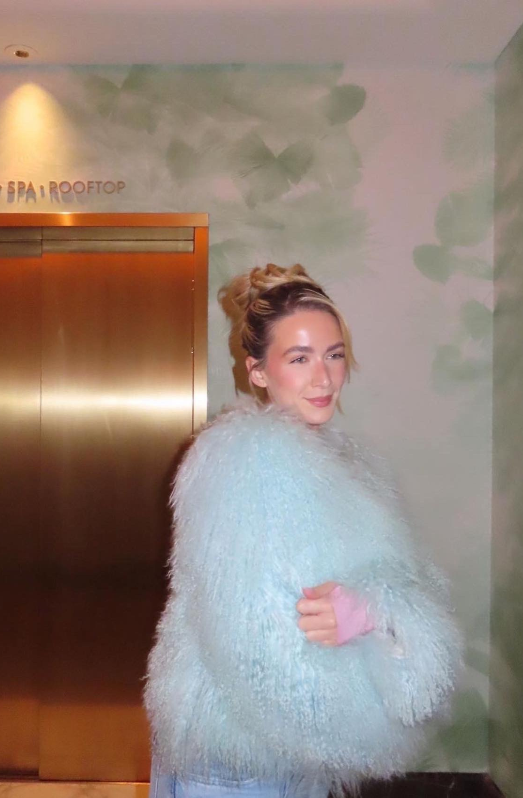 The Carrie Jacket By Miscreants is made from a luxurious Mongolian Sheep Fur in a Blue colour-way.